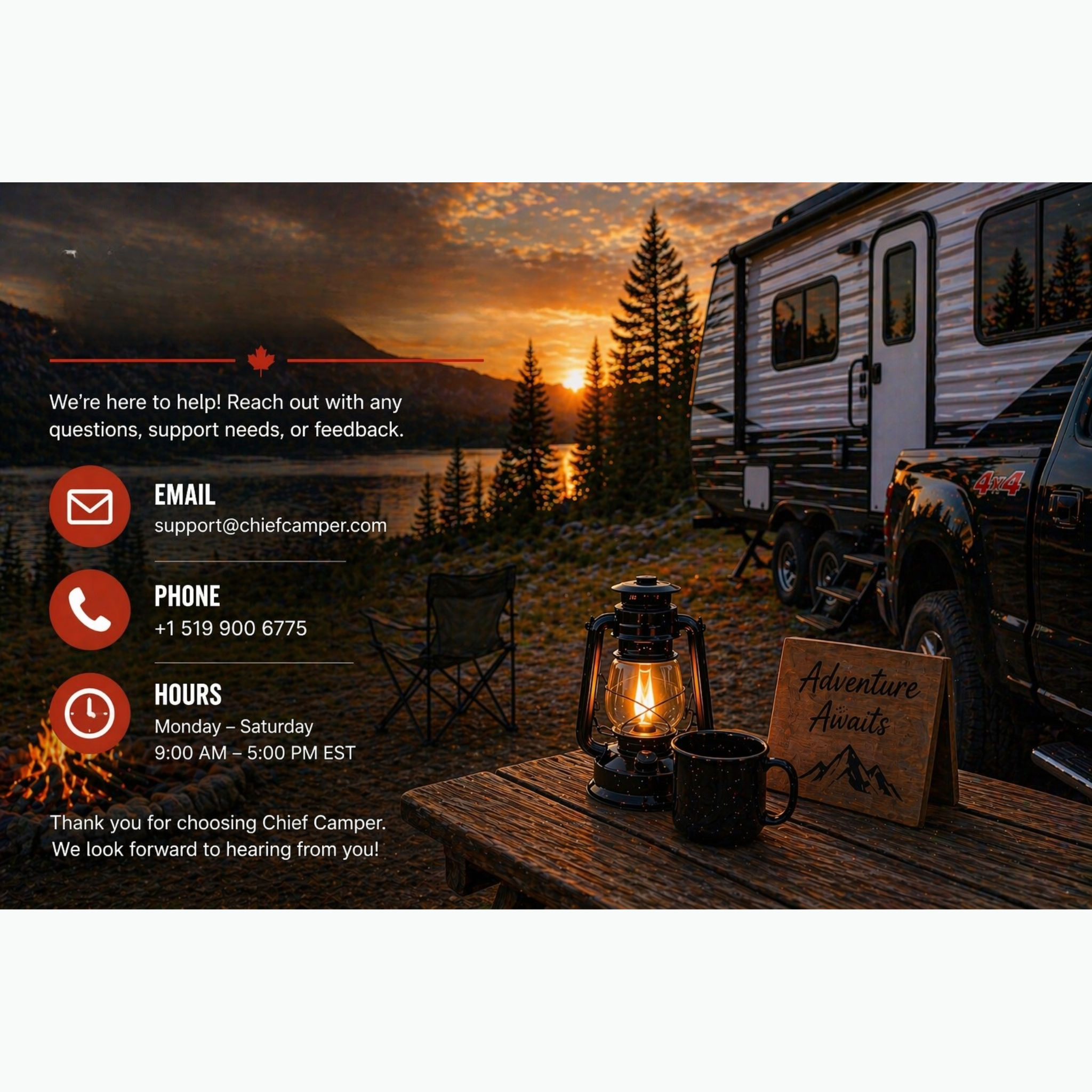 Need help finding the right gear or support with your order? The Chief Camper team is here with expert advice, reliable service, and solutions to keep you road-ready with confidence.